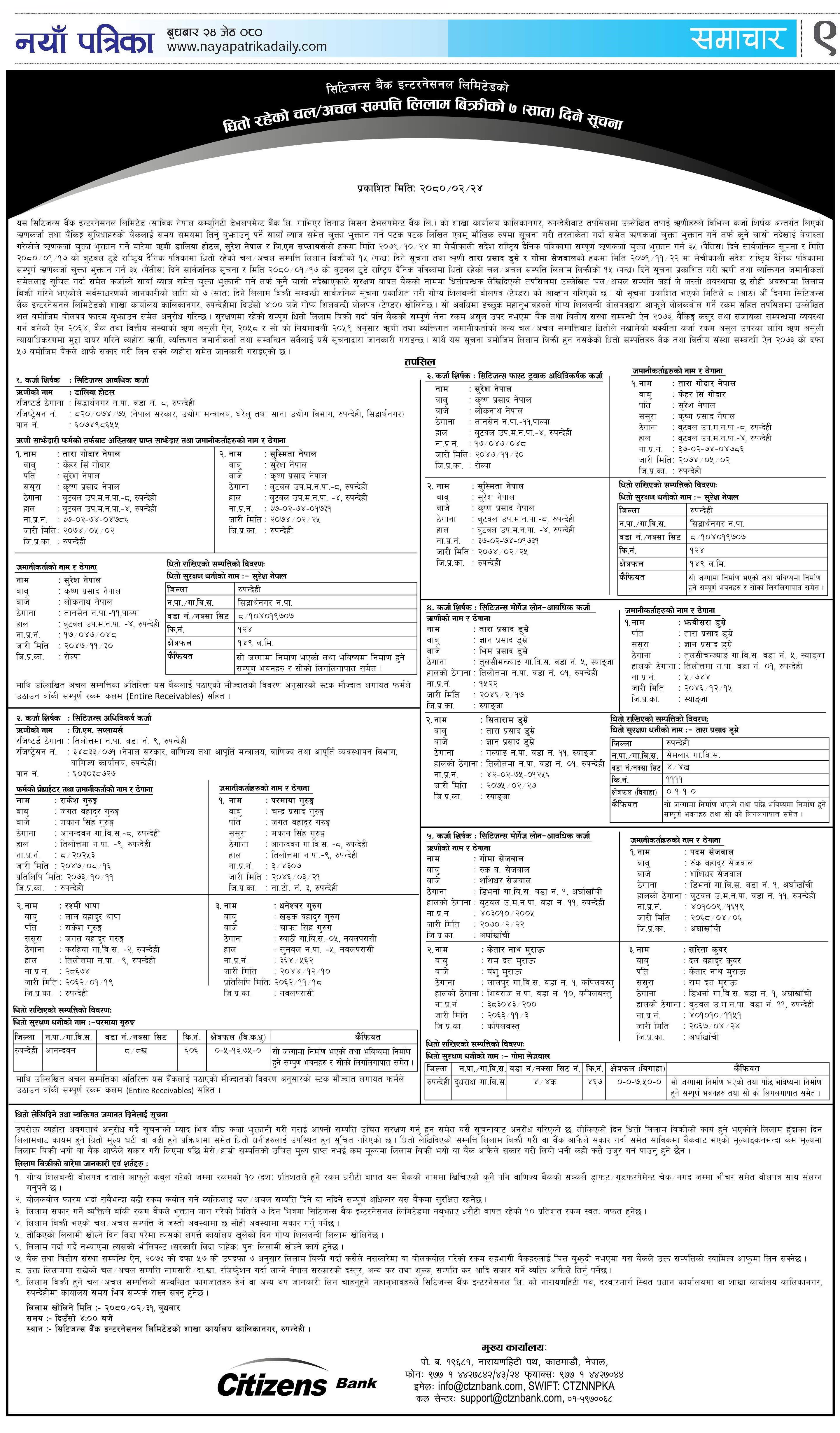 Daliya Hotel, G.M. Supplies, Suresh Nepal, Tara Prasad Dumre and Goma Sejwal- 7 days auction published in “Naya Patrika” newspaper on 2080.02.24 B.S.