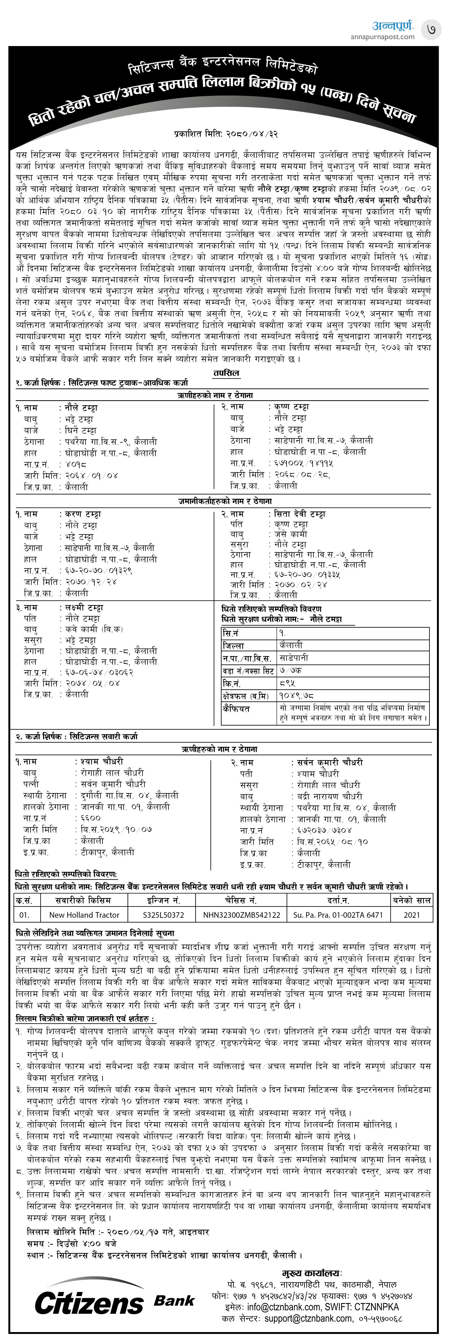 Naule Tamatta and Shyam Chaudhary- 15 days auction notice published in “Annapurna Post” newspaper on 2080.04.32 B.S.