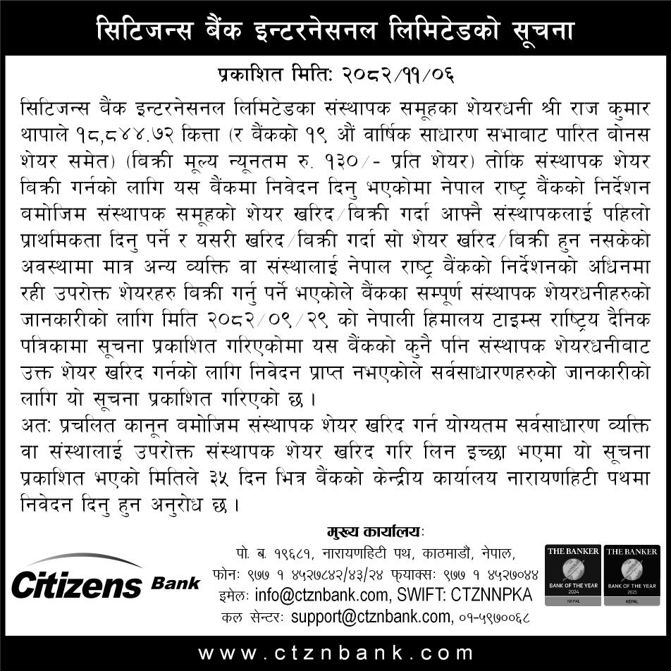 Promoter Share Holder Jyoti Regmi Adhikari's share on sale